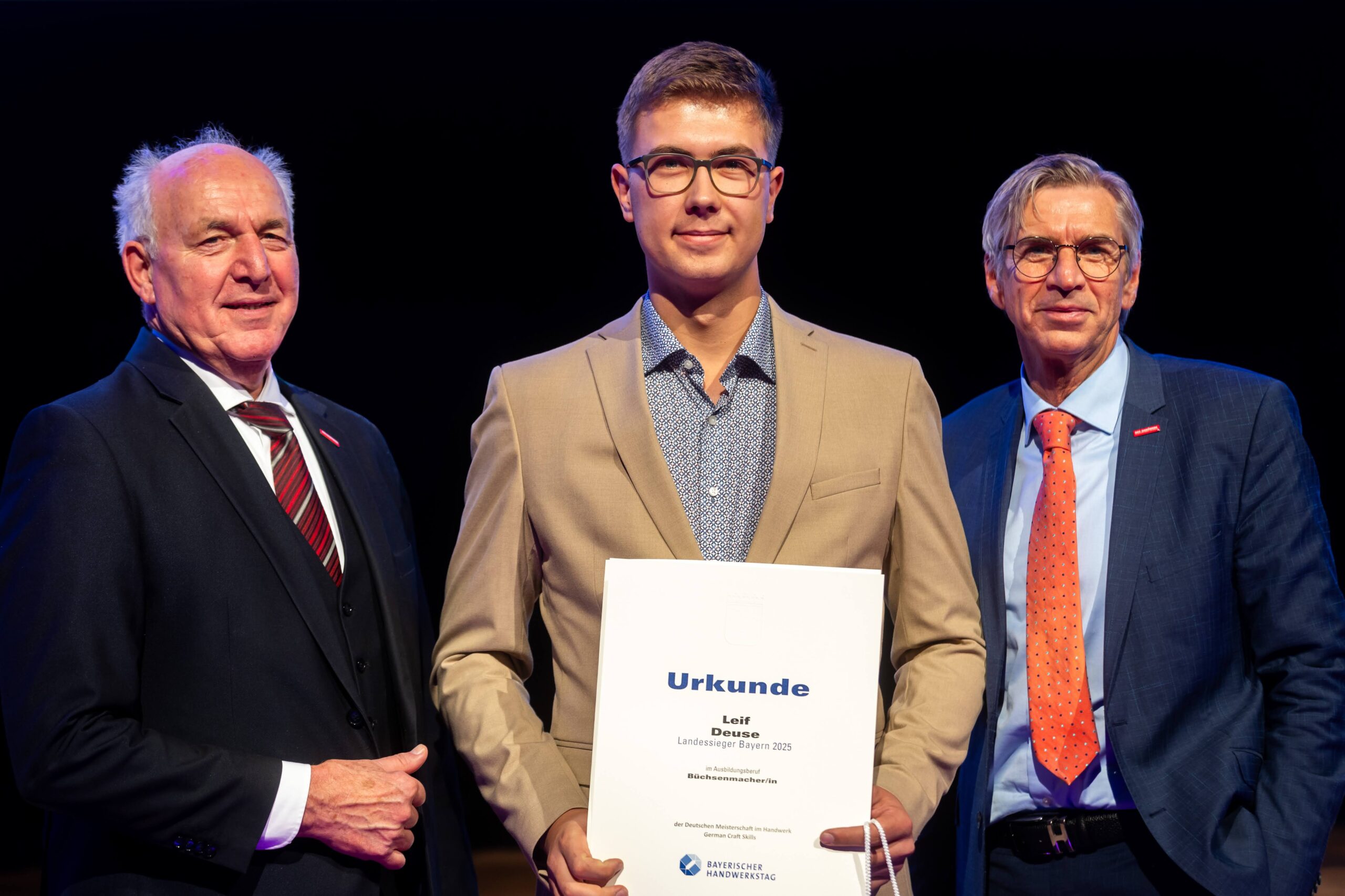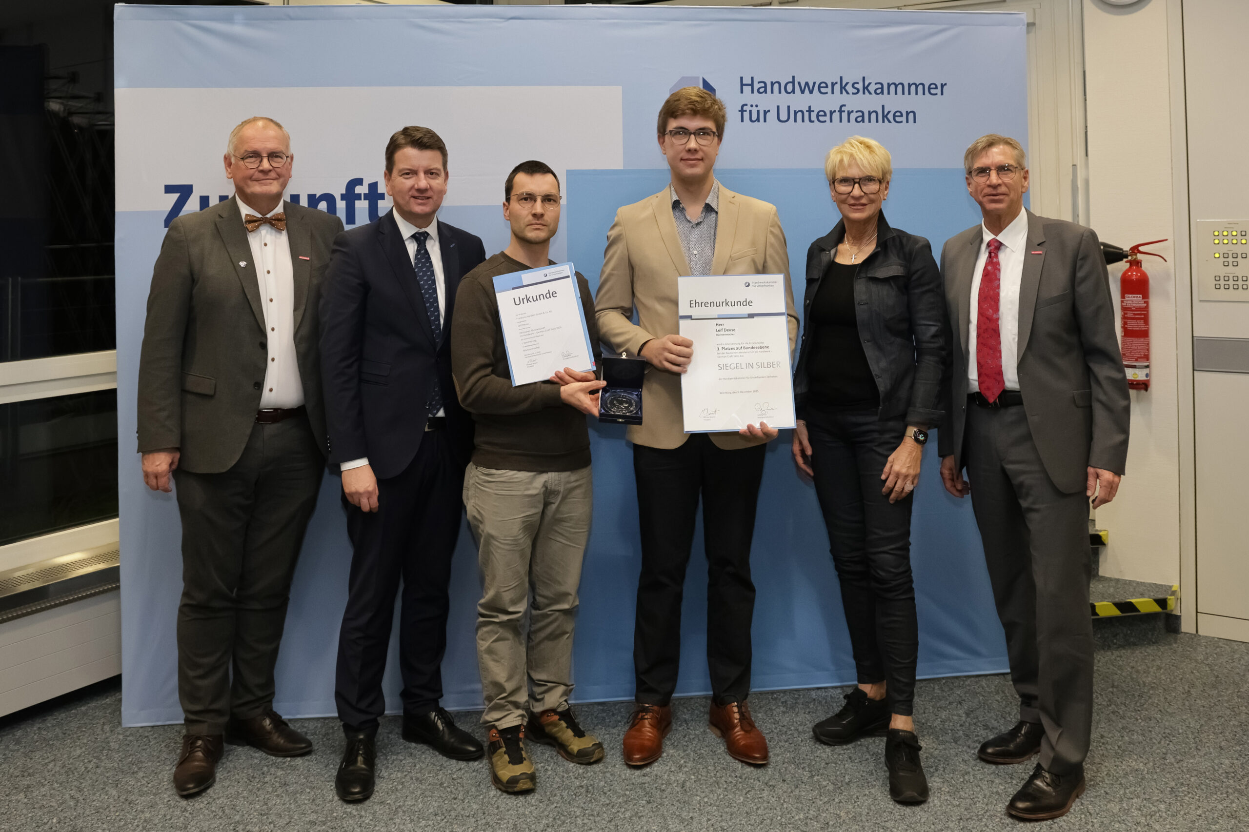 Letzte Woche fand die Sieger-Abschlussfeier für die besten Gesellinnen und Gesellen 2025 in Würzburg statt. Für seinen dritten Platz auf Bundesebene verlieh ihm die Handwerkskammer für Unterfranken ihr Siegel in Silber. Büchsenmachermeister und Ausbilder Sebastian Baier nahm die Ehrung stellvertretend für FRANKONIA als Ausbildungsbetrieb entgegen.