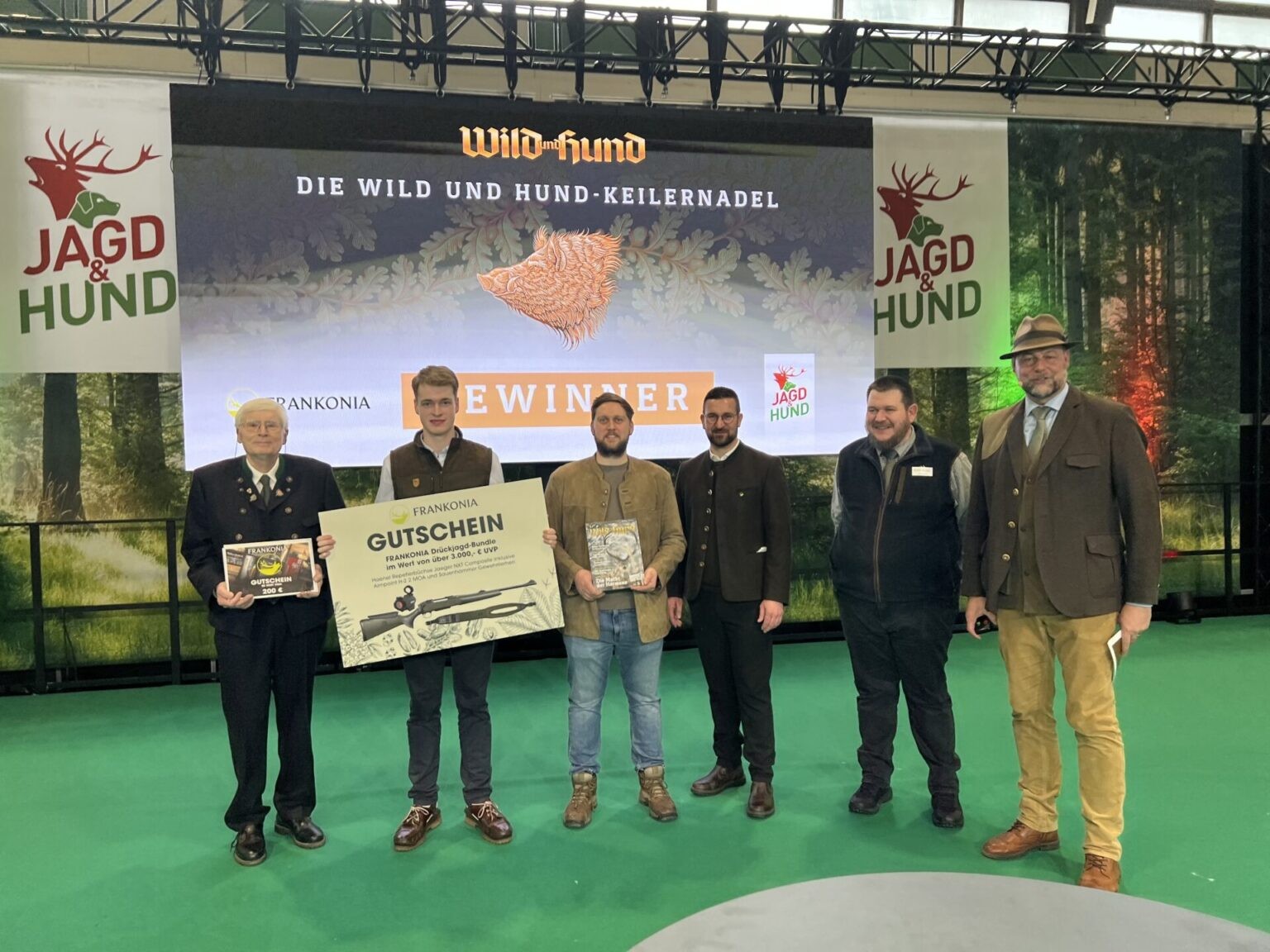 Am Messesamstag stand eine Preisübergabe im Rahmen der WILD UND HUND Keilernadel 2025 an. Seit vier Jahren können interessierte Jägerinnen und Jäger ihre Schießfertigkeiten bei dem neuen Schießkinostandard unter Beweis stellen. Das Ziel: sinnvoll trainieren und den bewegten Schuss unter praxisnahen Bedingungen waidgerecht anzubringen, denn bei kaum einer Bewegungsjagd bleiben herausfordernde Situationen aus, die einen präzisen Schuss erfordern. Unter den registrierten Schießteilnehmern wurden Preise verlost, die sie auf der Messe in Dortmund überreicht bekamen. Ole Sonnabend aus Niedersachsen sicherte sich den Hauptgewinn: ein HAENEL Jaeger NXT Composite Set inklusive Aimpoint Leuchtpunkt H-2 und Gewehrriemen von Sauenhammer, in Höhe von 3.000 Euro. Fünf weitere Meisterschützen erhielten jeweils einen 200-Euro-Munitionsgutscheine für die Marke Sellier und Bellot.