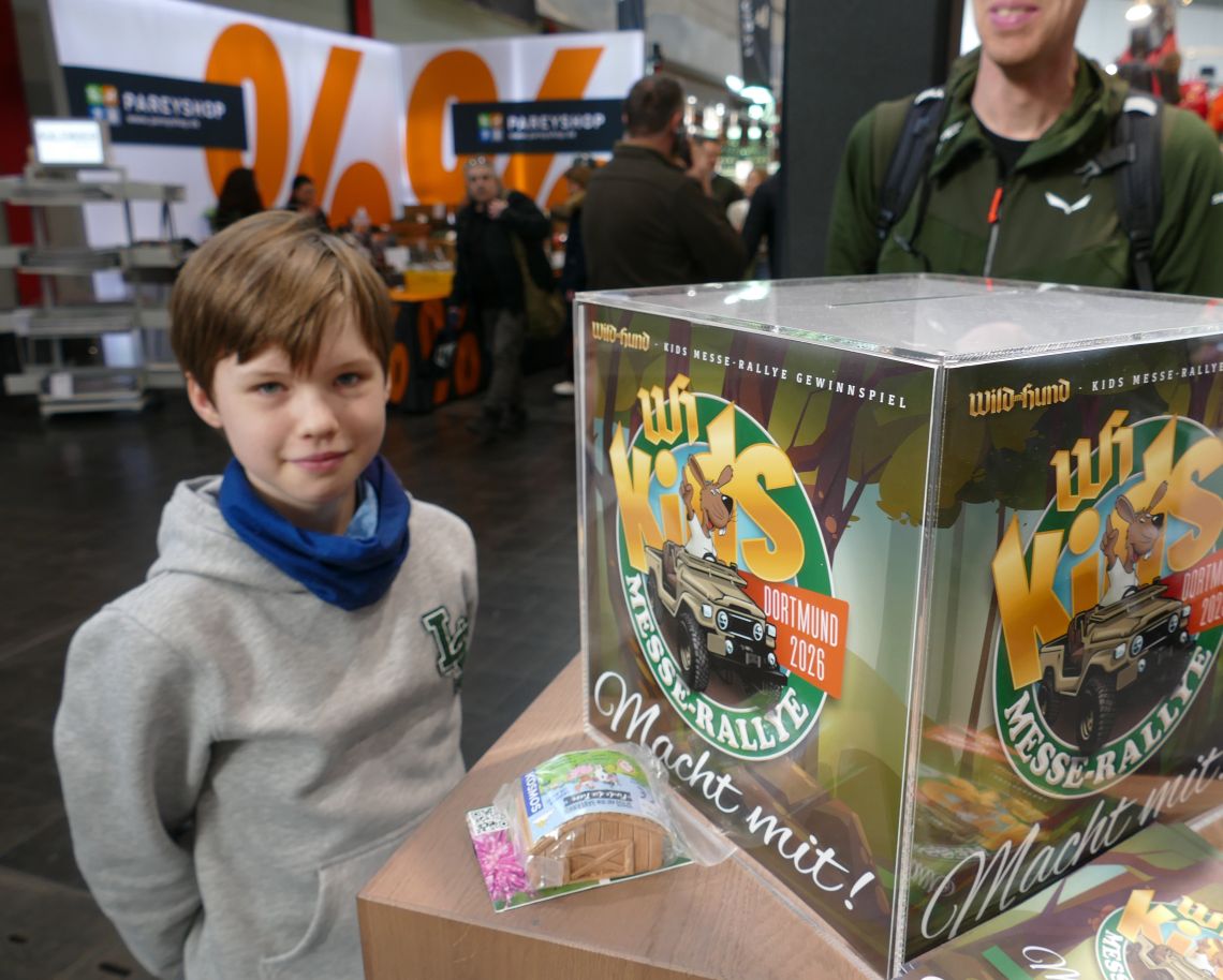Im Rahmen der WILD UND HUND Kids Messe-Rallye waren die kleinen Messebesucher gefragt: Für sie warteten an verschiedenen Ausstellerständen kleine Aufgaben, um spielerisch die Messe zu erkunden. Bei uns am FRANKONIA Stand konnten sich die Kids einen Stempel einheimsen. Neben PARFORCE Kinderbekleidung, interessanten Büchern und Kuscheltieren warten weitere tolle Sachpreise auf sie. Das Los entscheidet, wir drücken die Daumen! Die Gewinner werden über den Paul Parey Verlag bekannt gegeben.